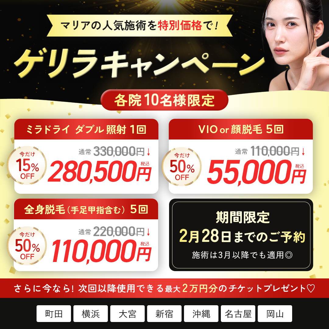 1月31日までにご予約いただいた方は、施術が2月以降でもキャンペーン適用となります。